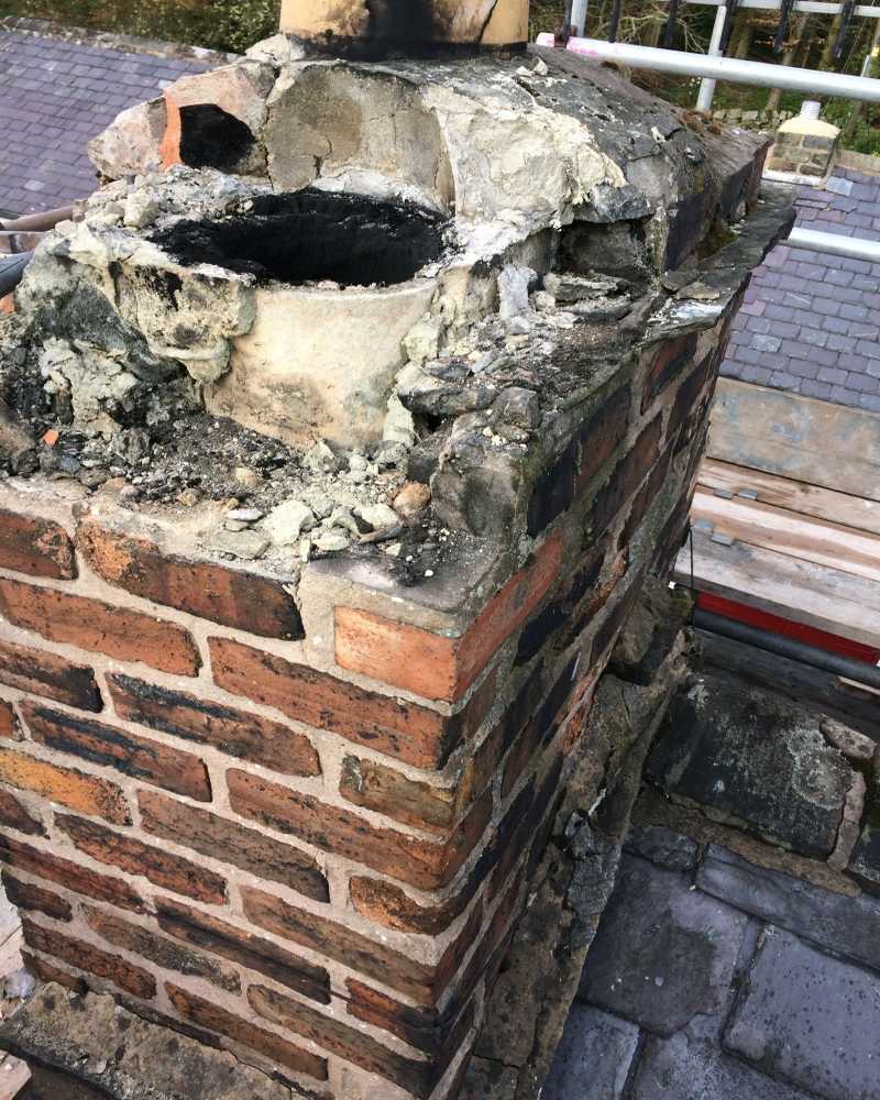 If your chimney stack is showing any signs of loose mortar, cracked brickwork or is leaning to one side, Matthews Roofing Carlisle have the expertise to carry out the necessary repairs to the highest standards.In a best case scenario your chimney stack may just have some loose mortar which will only require repointing. Much more seriously your chimney stack might be leaning to one side or have cracked bricks and will need to be rebuilt with new bricks. The level of chimney demolition and rebuilding required depends on how far down the chimney the problem starts. Chimney demolition and Chimney rebuilding is a highly skilled Job. Matthews Roofing Cumbria's skilled tradesmen are fully qualified to carry out this work guaranteeing that your chimney will be rebuilt correctly to a very high standard. We will erect scaffolding to ensure that the work can be carried out safely and efficiently, the cost of which is included in your quote. Matthews Roofing Cumbria also specialise in replacing or renewing broken or dislodged chimney pots and bird cowls. Dislodged or broken bird cowls if not replaced can result in guests building a nest in your chimney which is then likely to block your chimney leading to more expense. Replacing a dislodged or broken chimney pot is a quick and relatively inexpensive job but if not caught early can lead to more serious damage to your roof. Damaged pots can simply be replaced with a suitable new pot and dislodged pots can be removed, cleaned and replaced on a bed of mortar.