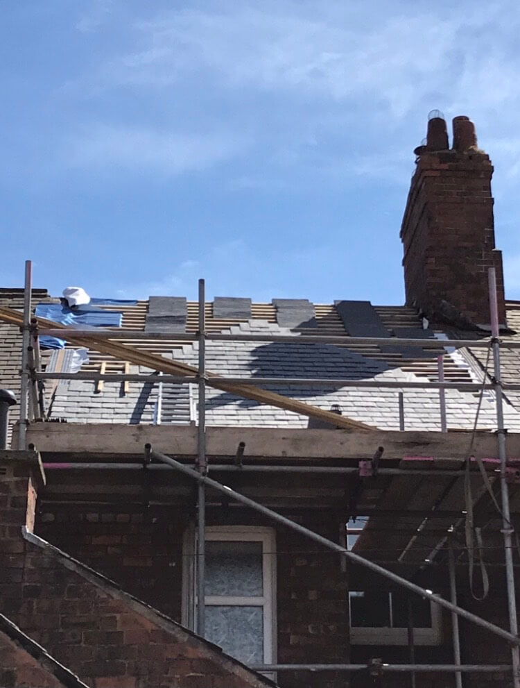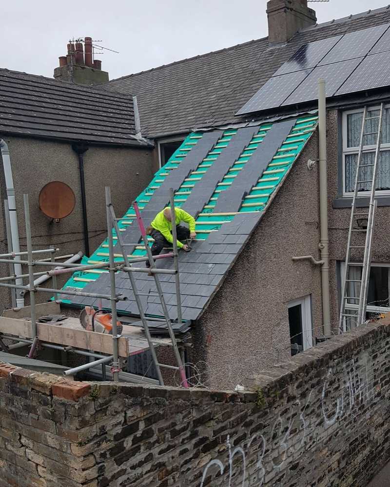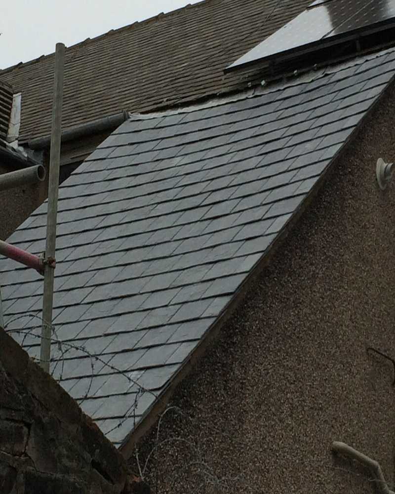 At Matthews Roofing Carlisle, before work commences all the slates are pre-graded into 3 different thicknesses giving the roof a far superior finish. We start by fitting the highest quality breathable membrane felt which allows the roof to breathe properly. We then fit 2×1 battens before fitting the slates starting at the bottom with the heaviest ones first finishing with the lightest slate at the top. The slate are fixed using copper nails meeting the highest industry standards.Contact us on the telephone numbers below or use our FREE quote form on our Home and contact pages.